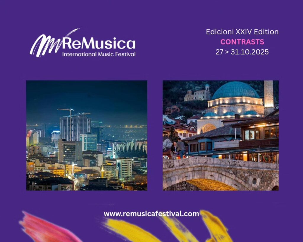 Prishtina dhe Prizreni do të jenë qendrat e muzikës bashkëkohore, ku nga sot e deri më 31 tetor 2025, fillon edicioni i 24-të i Festivalit ReMusica, i cili këtë vit vjen me temën “Contrasts”, që ndërthur traditën me modernitetin, muzikën klasike me atë bashkëkohore, dhe rrënjët me inovacionin e guximshëm.
